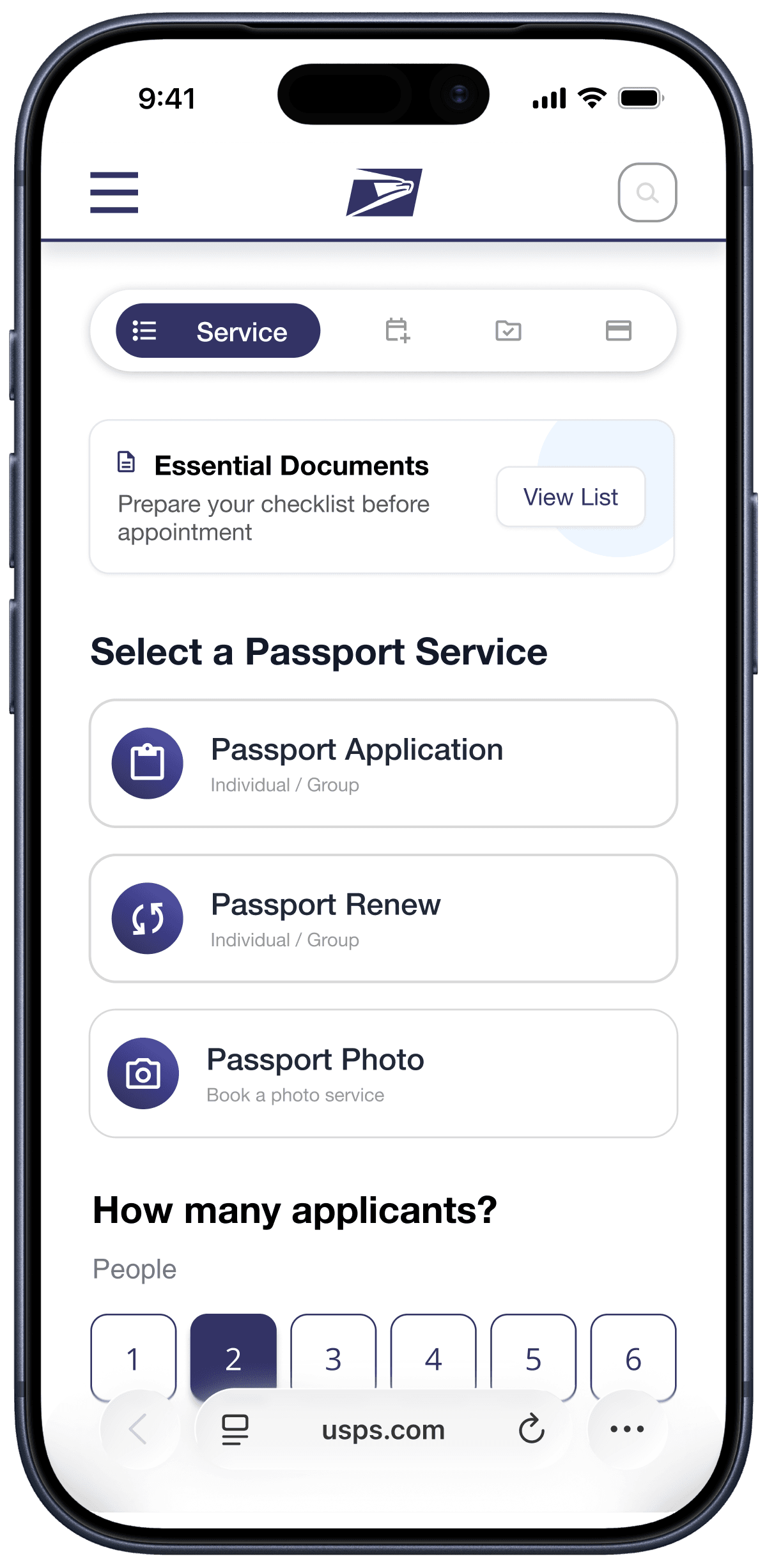A unified USPS passport appointment flow that helps users go from service selection to booking—faster, clearer, and with fewer drop-offs.