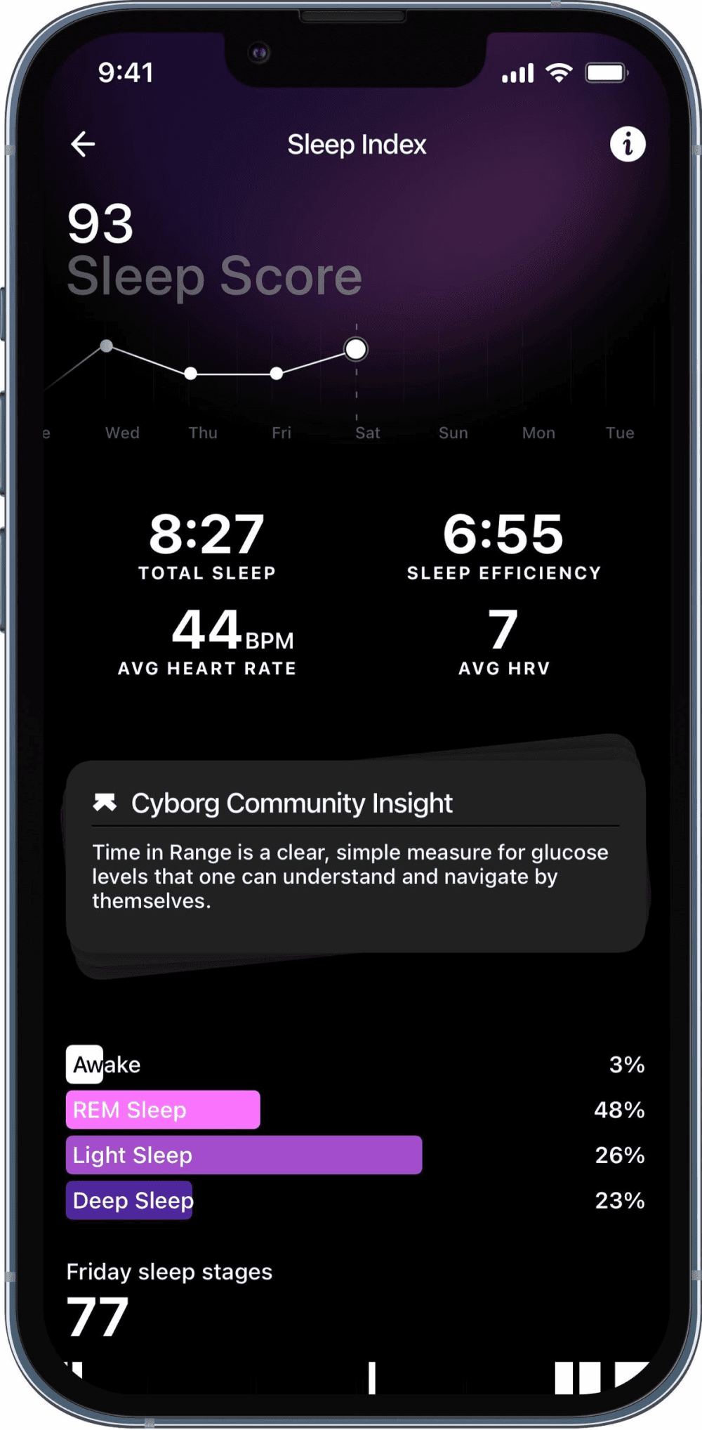 Thermoast unifies sleep stages and temperature in a single timeline, highlighting a personal comfort range for the next night.