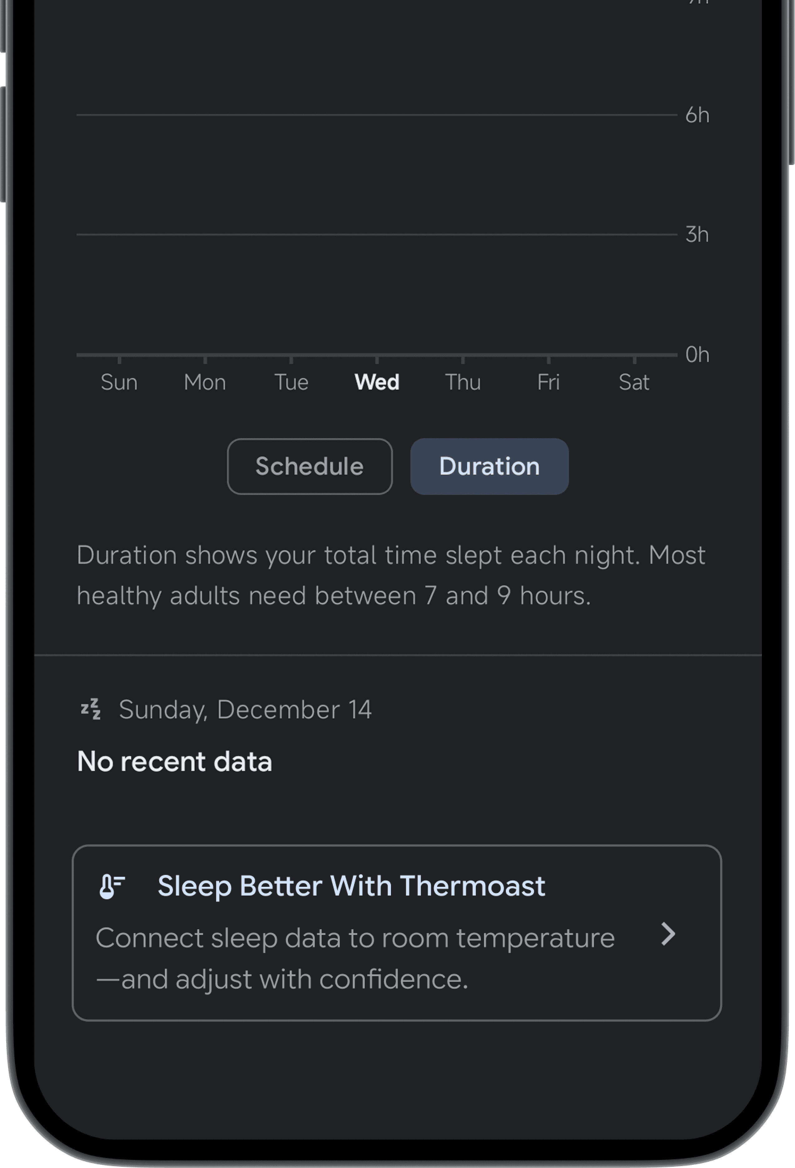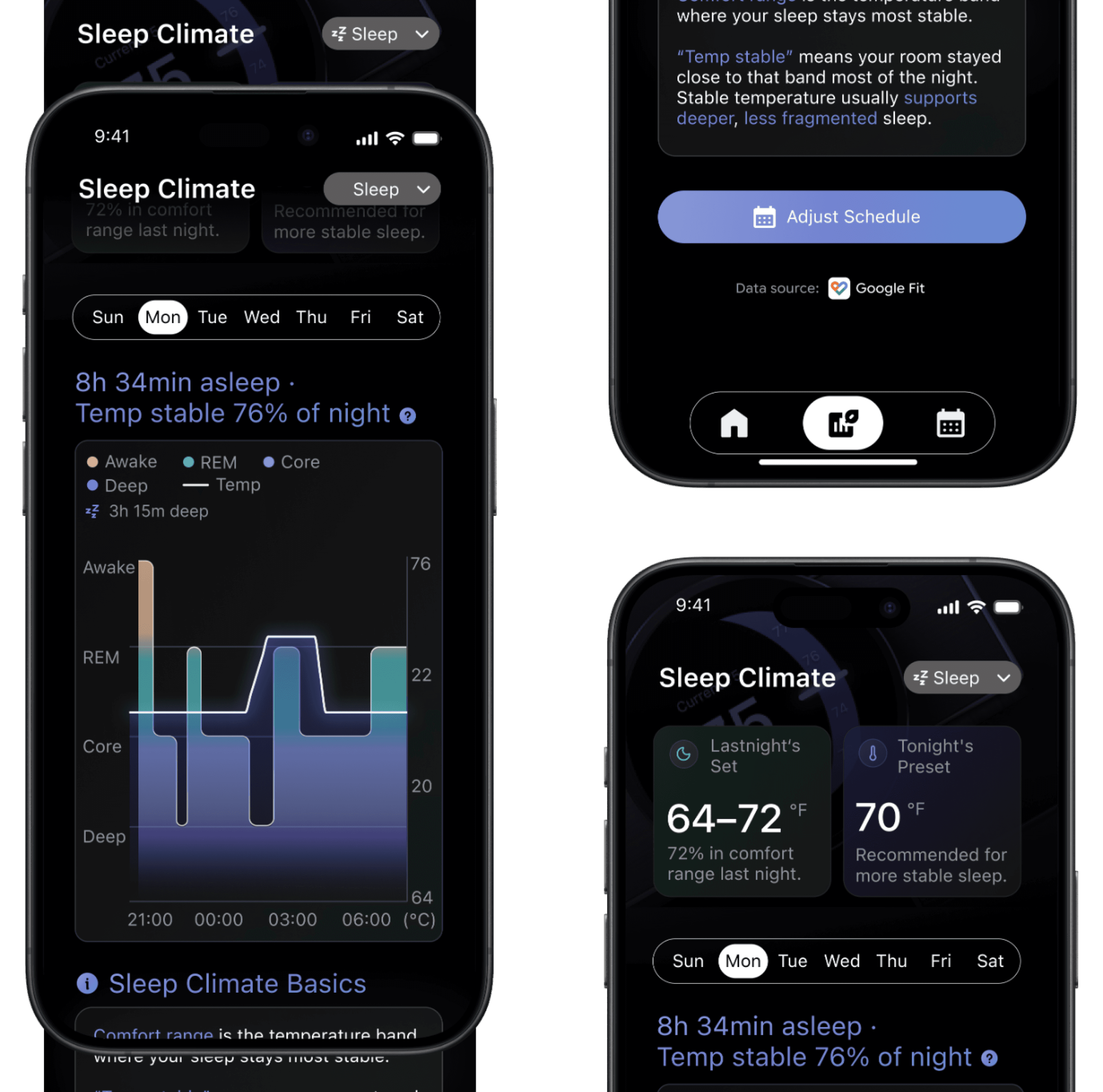 Thermostats provide control but don’t explain how nightly temperature patterns relate to sleep outcomes.