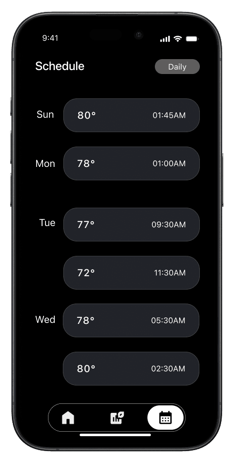 We redesigned Thermoast into a consistent scheduling experience that users can act on instantly.